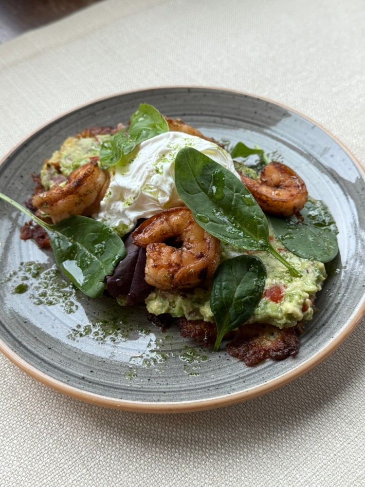 Драники з гуакомоле, яйцем пашот і креветкою, 290г